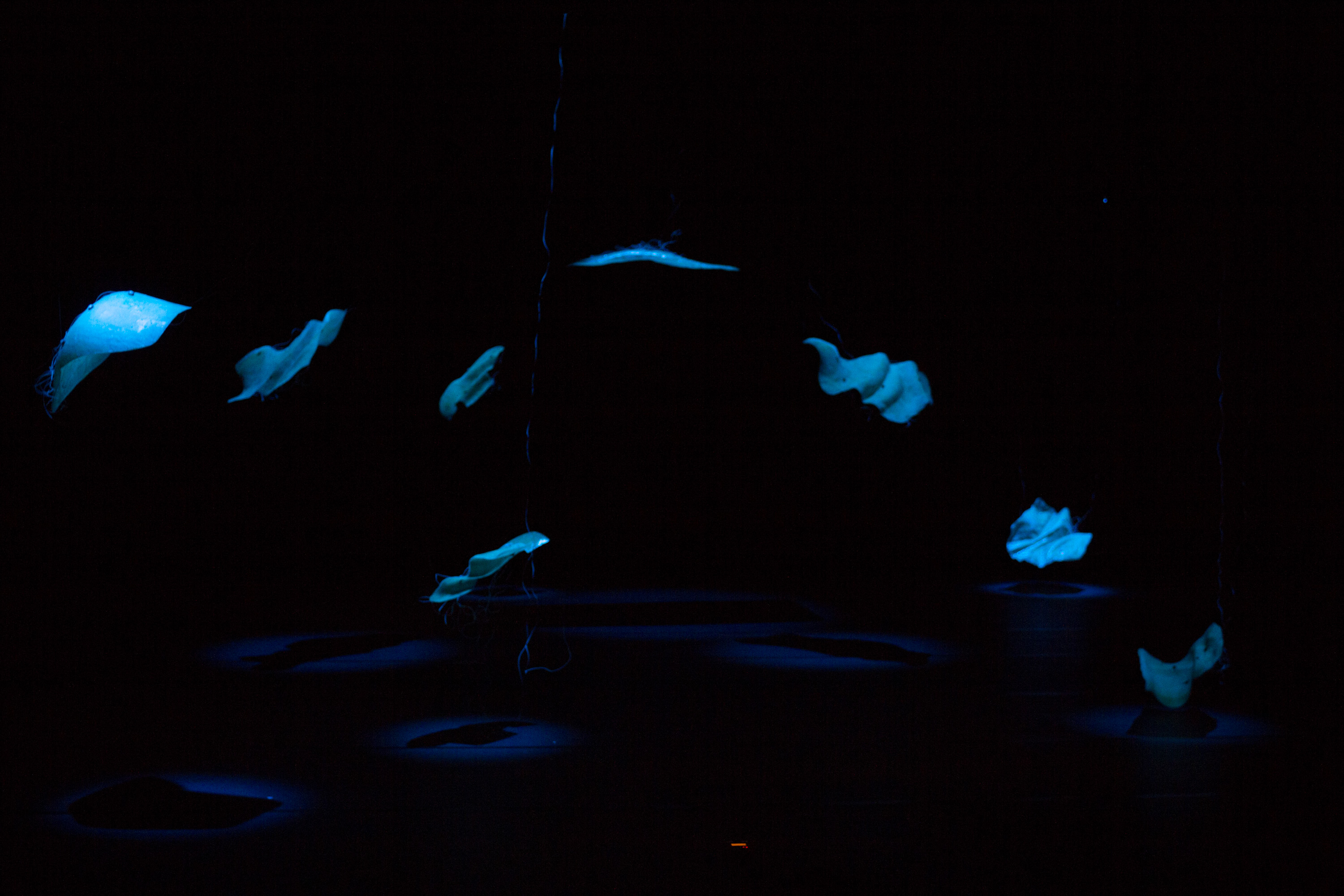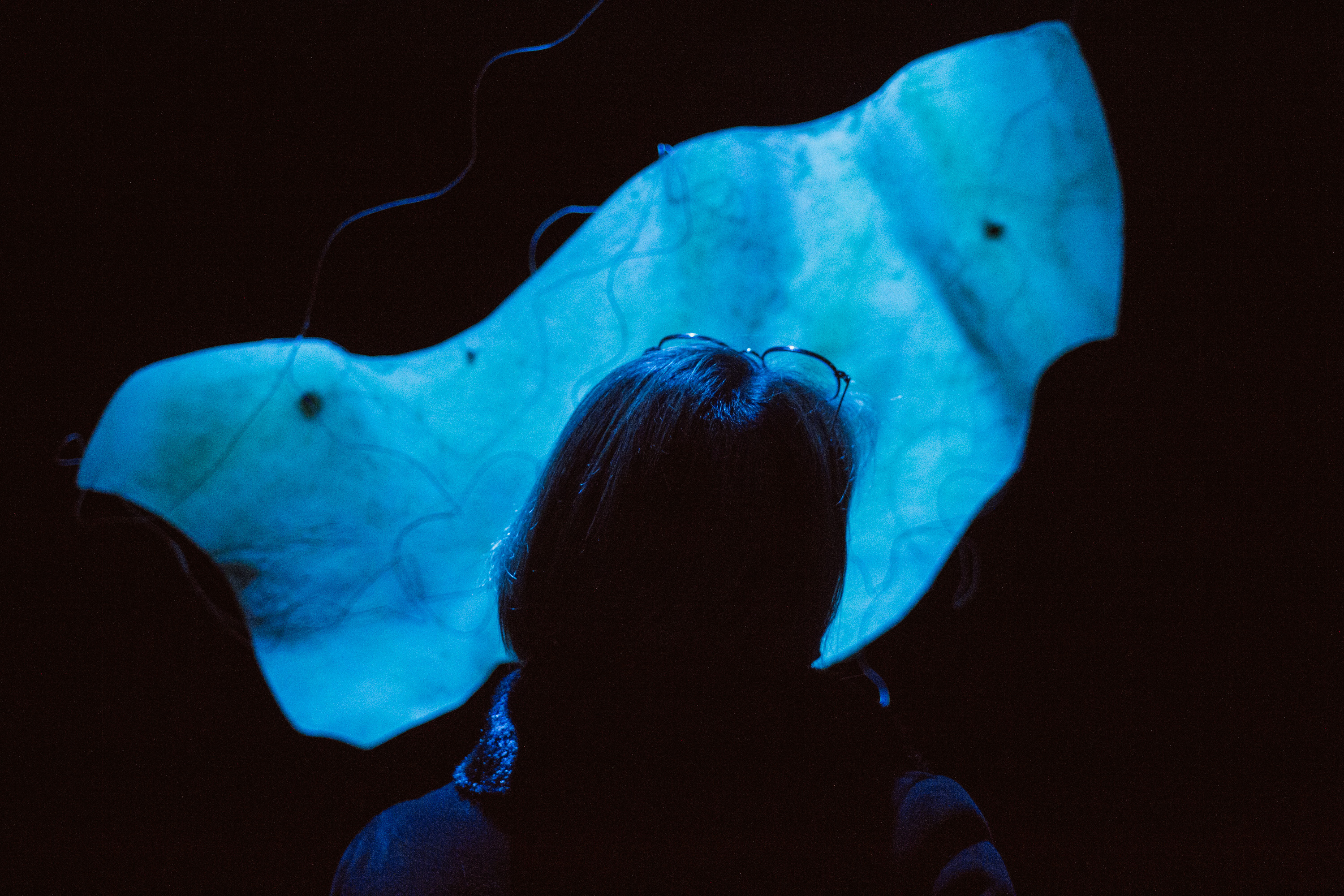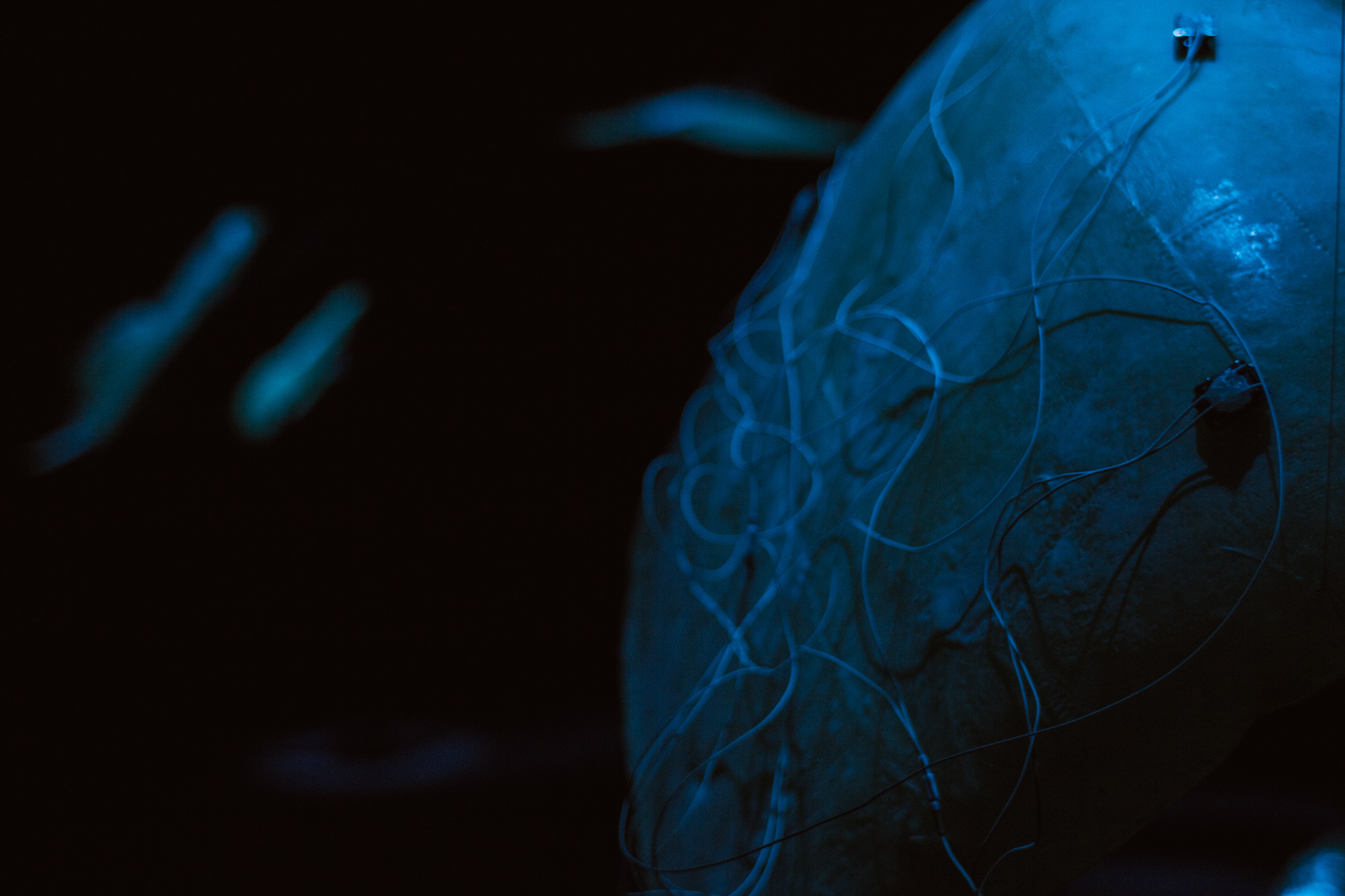 Rather than transposing EEG brain data into sonic or musical elements, Dominik chose to build an immersive environment where static illuminated sculptural pieces relate to a dynamic sound track spatialised over the objects with tens of tiny transducers. The visitors create their own mix between sound sources as they walk among them. This art-science project aims to re-enact a brain mapping by means of a metaphorical space, rendering a subjective experience of pressures that is mirrored in the tension between auditory and visual perception.