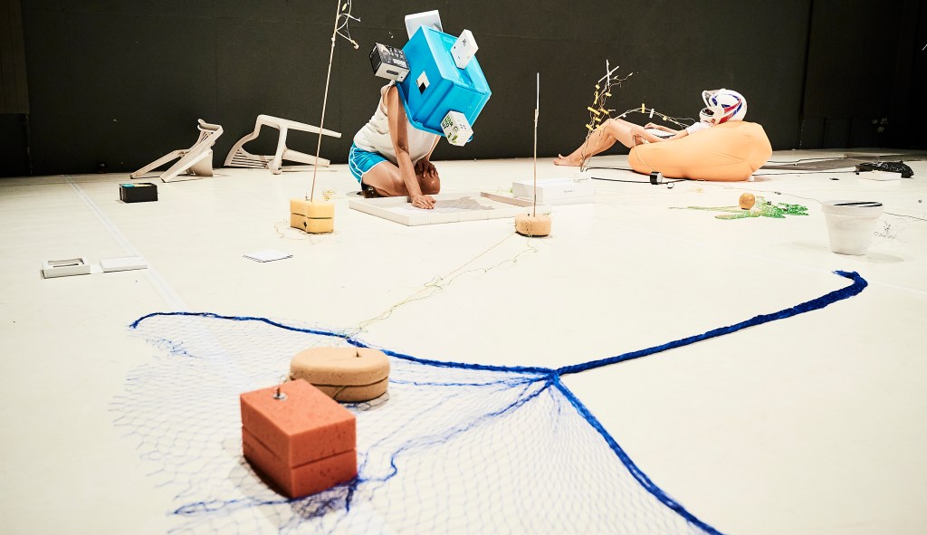 The PYL ensemble creates a free scenic world in which anything can happen. A highly imaginative project about a world that is broken, full of waste and defects. Spatial and almost dance-like and static composition, a field full of possibilities and spontaneity presents play, rather than a direct critical commentary. Reality surfing is a landscape in which people and things coexist without the necessary anthropomorphic principles…” (Terén)